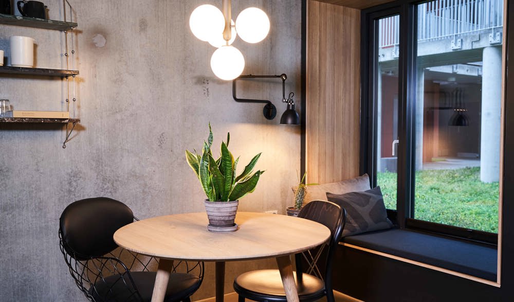 Alle værelser er mellem 30-48kvm store. Hvert værelse har eget køkken med alt du behøver til madlavning, stort badeværelse med håndklæder, hårtørrer og lækre badeartikler, soveværelse med dobbeltseng og B&O TV samt møbler og interiør i dansk og internationalt design. Stilen er eksperimenterende, hvor rå materialer og industrielt design kombineres med bløde tekstiler, original kunst og farver. Der er forsøgt at skabe en tilstedeværelse, der matcher din hverdag bedst muligt, med mulighed for lidt ekstra selvforkælelse.